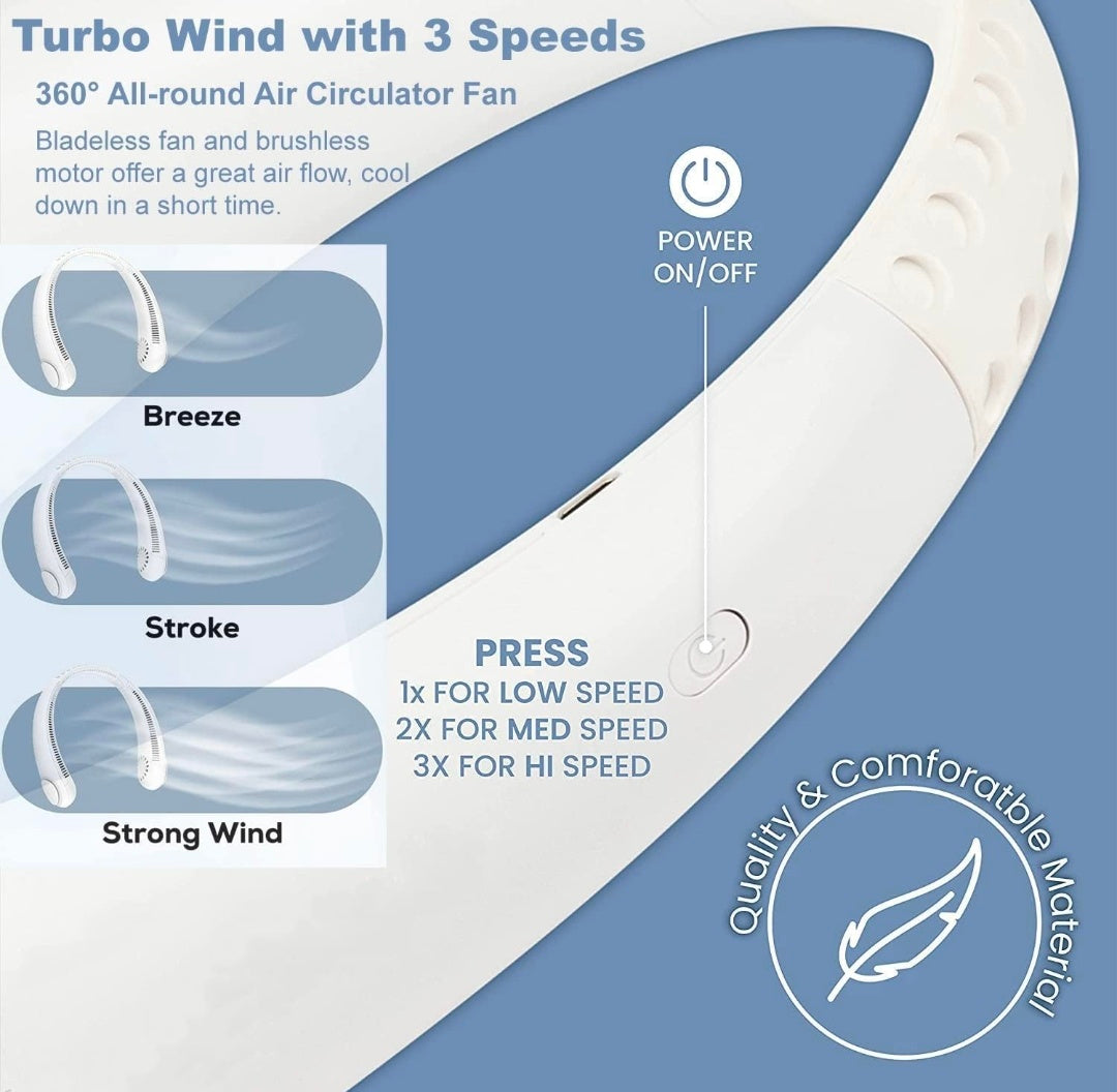 Battery lasts up to 6 hours on low speed, 4–5 hours on medium, and 2.5–3 hours on high speed.